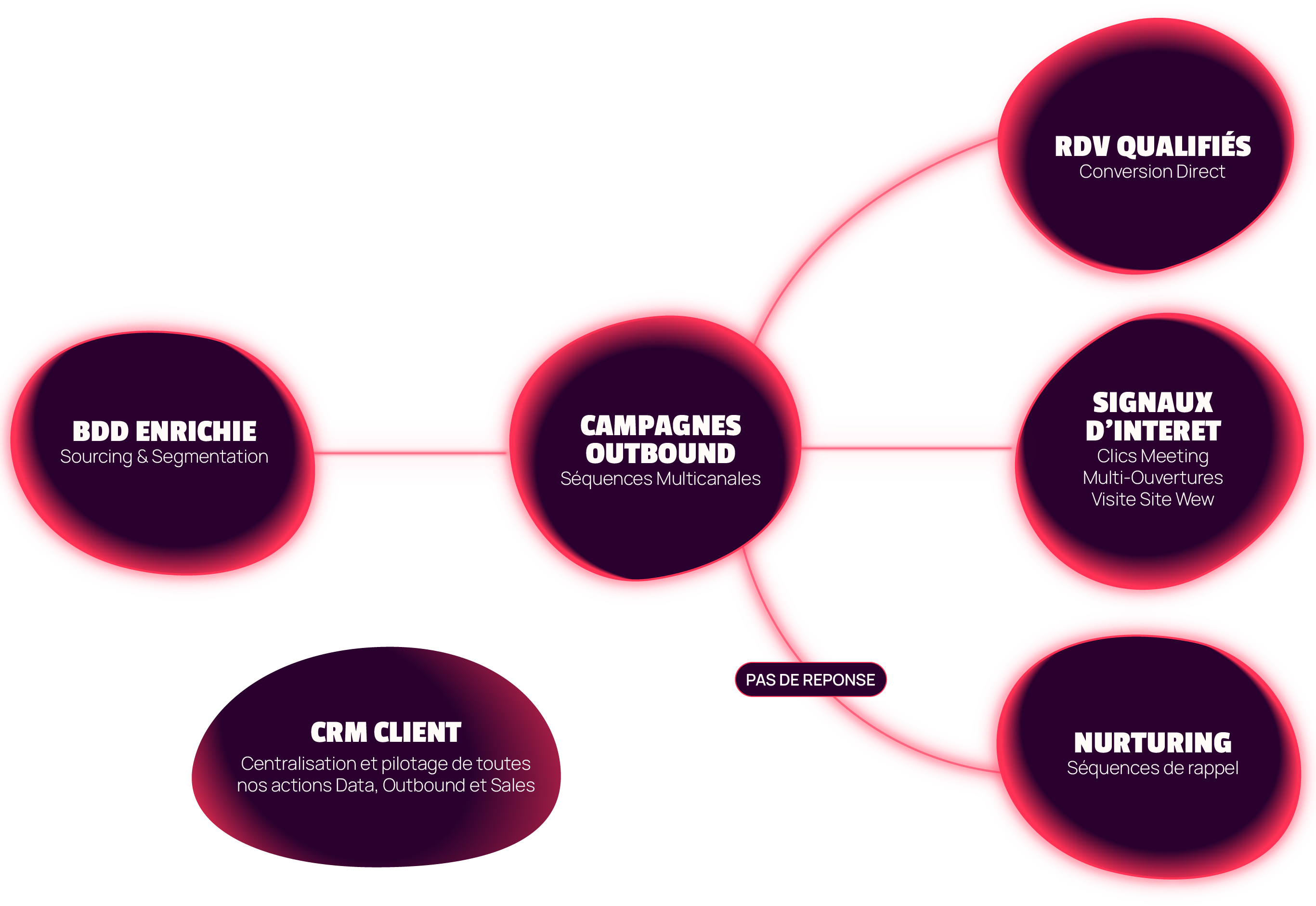 Nous fonctionnons comme une extension de votre équipe commerciale en lançant des campagnes Outbound pour générer rapidement des rendez-vous qualifiés et en attribuant des leads prioritaires à vos commerciaux. Cela leur permet de se concentrer uniquement sur la vente en leur supprimant la phase de chasse .